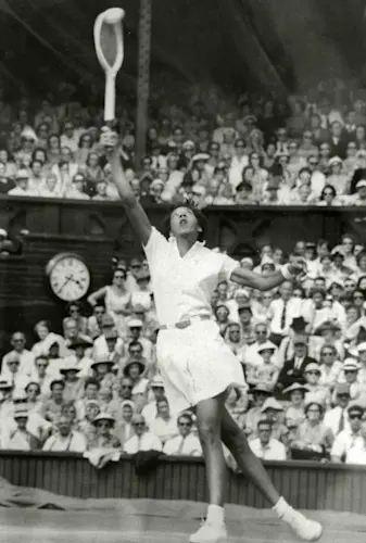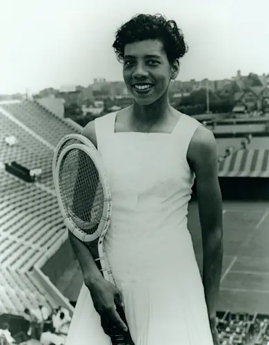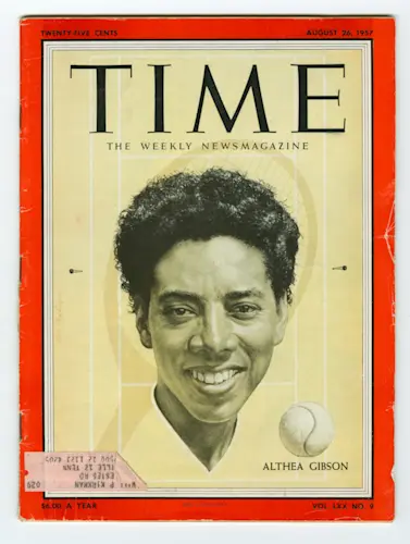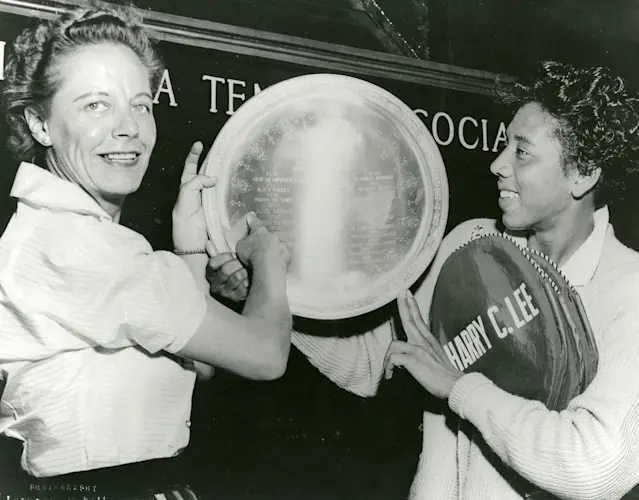 In 1955, Gibson’s career reached a turning point. She was selected to join a State Department tour of Southeast Asia in its tennis exhibitions. Regular play against seasoned players, without the pressure associated with the major tournaments, allowed Gibson to experiment with strokes and strategy until she found the winning combination. The following year in 1956 Gibson won the French Singles Championship, becoming the first Black player to win a major singles title. She teamed up with Angela Buxton to win both the French Doubles and the Wimbledon Ladies Doubles. However, she was not invited to play in the U.S. National Doubles held at the Longwood Cricket Club in Boston.