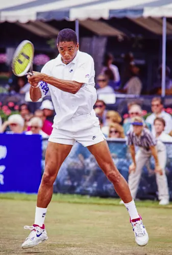 Shelton’s eight-year professional career began in 1989. His took his first ATP Tour title at the 1991 Miller Lite Hall of Fame Tennis Championships held in Newport, Rhode Island, becoming the first African-American man to win a professional singles title since Arthur Ashe in 1978. Shelton won another title at Newport in 1992. He reached a career-high ranking of No. 55 in the world that same year. Shelton seemed on the verge of a significant breakthrough at the 1994 Wimbledon Championships. As a qualifier, Shelton upset Michael Stich—the 1991 Wimbledon champion—in the first round. Shelton advanced to the fourth round, which became his best singles result at a major.